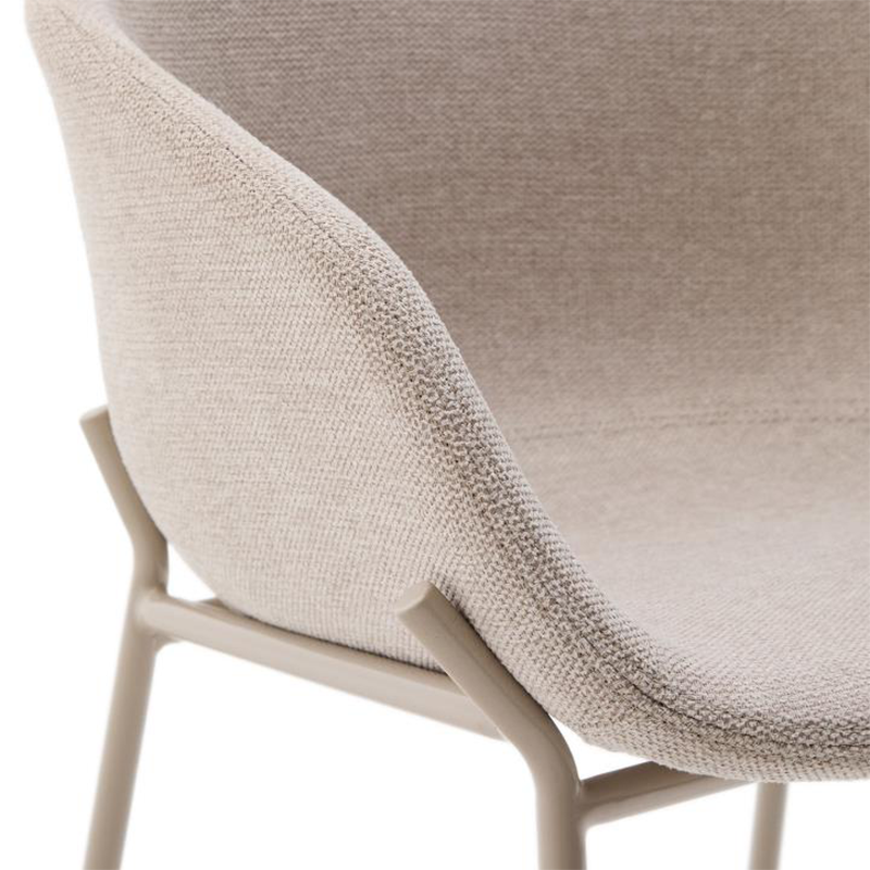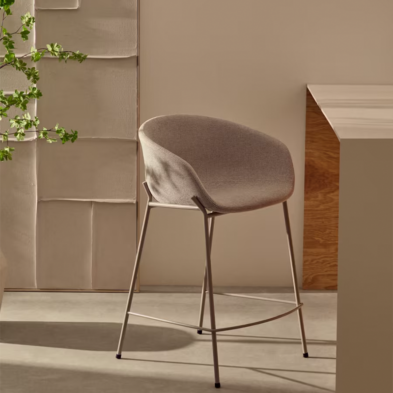 El taburete Yvette presenta un diseño actual con tapizado en chenilla beige, aportando suavidad y una estética elegante. Sus patas de acero con acabado beige refuerzan la coherencia cromática y la estabilidad del conjunto. Con una altura de 65 cm, se adapta perfectamente a islas y barras de cocina. Una pieza de diseño funcional que combina confort, equilibrio visual y estilo contemporáneo.