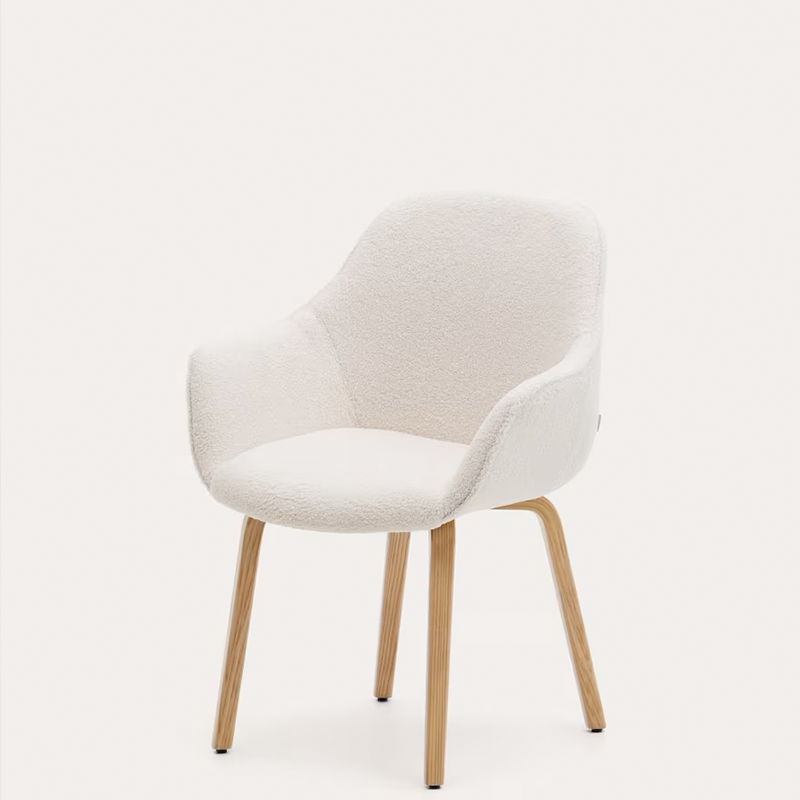 Silla Ali tapizada en borreguito blanco y patas madera caciza fresno acabado natural